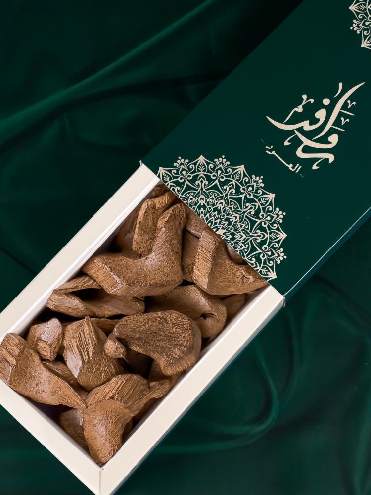 عود طبيعي محسن، بوزن 90 جرام، يتصدر المشهد بفوحان لا يُقارن وثبات يدوم لساعات، يُعبّر عن روح الأصالة والترف في نفحاته.